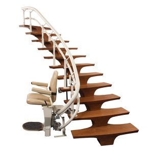 Straight and Curved Indoor and Outdoor Stairlift Specialists. We find the best model that best fits your stairway, personal needs and budget. Our straight rail indoor residential include the Bruno Elan SRE-3050 and Bruno SRE-2010, the Handicare 1100 and 1024, and the Harmar SL300 with folding flip-rail. Our Outdoor Stair Lift Chairs include the Bruno Exterior Elite SRE-2010E and the Handicare 1000 Outside Stair Chairlift. Our Curved stairway staircase chair stairlifts include the Bruno Elite CRE2110 and Exterior Chairlift Bruno Elite CRE-2110E and the Handicare 4000 Outside Chairlift. The Handicare Freecurve indoor curved chairlift is one of the very best on the market. The New AccessBDD Flow X Curved staircase chair lift is sure to become one of our best sellers. |