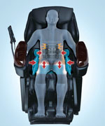 Airbags on both sides hold the pelvic area in place as the massage heads knead the lower back