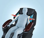 Airbags inflate to hold the sides of the thighs, calves and soles of the feet. The leg rest rises to stretch the leg muscles while the back is gently kneaded.